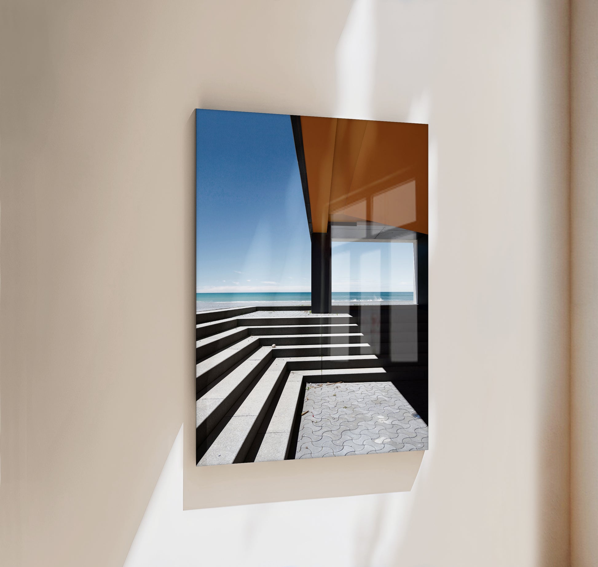 This product features a design that has been accurately reproduced on an aluminium composite panel and is covered with a glossy acrylic glass panel. The elegant borderless construction, combined with the polished acrylic glass, creates a striking depth effect. The product has been designed with lightweight, shatterproof materials to keep its weight minimal while also enhancing the vibrancy and depth of the colours.
